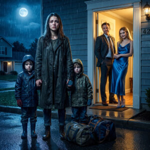 Nos sentamos en el frío pavimento de la acera, a pocos metros de la puerta que acababa de cerrarse tras nosotros. Podía escuchar su risa resonar a través de las paredes, un eco de traición que me oprimía el pecho. Necesitaba esos segundos para pensar con claridad, para no desmoronarme frente a mis hijos, que me miraban esperando una respuesta que yo aún no tenía.