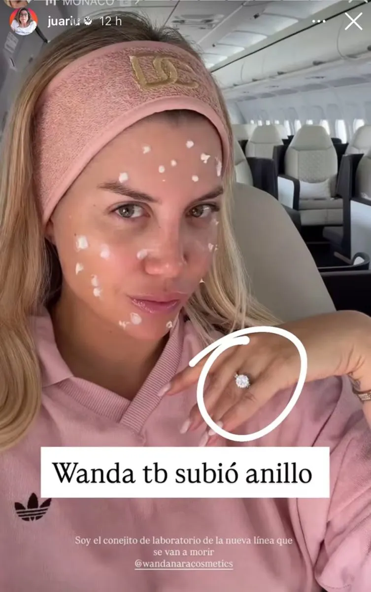 Poco después apareció otra historia que alimentó aún más las teorías. Desde un avión privado, Wanda Nara compartió una imagen en la que también se distingue un anillo en el mismo dedo. Aunque la publicación mostraba parte de su viaje, el detalle de la joya no pasó desapercibido y provocó comparaciones inmediatas con la foto que había subido la actriz.