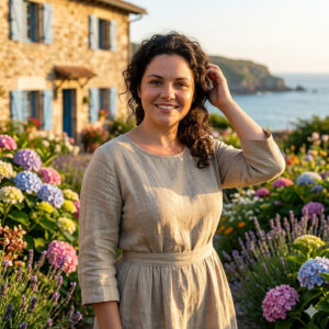 La casa de mi abuela era un refugio de piedra y pizarra, con una puerta de madera azul descolorida por el tiempo pero llena de carácter. Al entrar, el olor a madera antigua y lavanda seca me envolvió como un abrazo. Todo estaba tal como lo recordaba: la chimenea de piedra, el sillón de flores, las ollas de cobre en la cocina. Me senté en el balcón que daba al jardín. Las hortensias azules y violetas eran macizos gigantescos bajo el sol de la tarde.