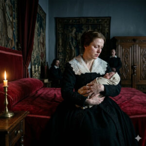 La decisión era terrible. Si el parto no progresaba pronto, podrían tener que elegir entre salvar a la madre o al bebé. Las leyes de la época eran claras. Si había que elegir, se debía salvar al bebé, especialmente si era varón, porque el bebé podía ser bautizado y salvar su alma, mientras que la madre ya estaba bautizada. Finalmente, después de 4 horas de dolor extremo, el bebé nació. Era una niña. La decepción en la sala fue palpable. No el varón que todos esperaban, sino otra infanta.