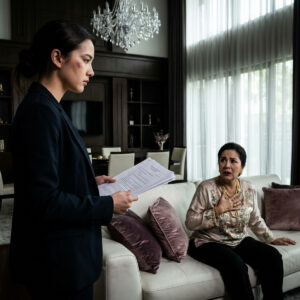Para preparar el escenario, Carmen se vistió como una empleada doméstica, con una bata gastada y el pelo desordenado. Doña Rosa y Diego llegaron estupefactos ante la majestuosidad de la mansión. Carmen les mintió, asegurando que solo era la cuidadora de la casa mientras los dueños estaban en el extranjero. La avaricia en los ojos de doña Rosa se encendió como faros. En cuestión de minutos, ya estaban planeando mudarse, alquilar su viejo piso para pagar deudas y relegar a Carmen al “cuartito detrás de la cocina”. “Tú serás la sirvienta, será muy cómodo”, dijo doña Rosa con un descaro que hacía hervir la sangre. Incluso se instalaron esa misma noche, manchando las alfombras blancas con sus zapatos sucios. Carmen les sirvió té, pero añadió discretamente una mezcla de hierbas calmantes para que durmieran profundamente mientras ella terminaba de recolectar pruebas.