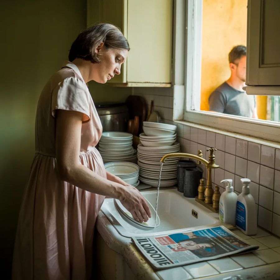 Lucía simplemente bajó la cabeza y continuó lavando los platos.
