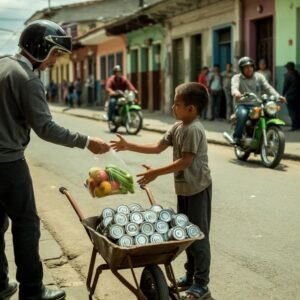 Aquella mañana, Noah ya estaba sudando antes de que saliera el sol. El carrito rechinaba como siempre. Ya casi llenaba dos bolsas. Eso significaba tal vez plátanos. Tal vez su mamá no fingiría que no tenía hambre.
