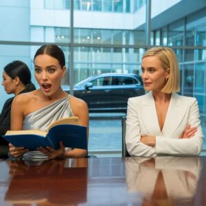 Colocas la carpeta azul sobre la mesa de caoba pulida con mano firme, y esa misma calma es lo primero que inquieta a todos.