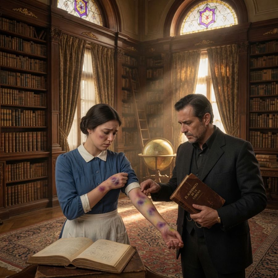 Aquella mañana, Lucía intentaba alcanzar un libro en el estante más alto de la biblioteca. Al estirar el brazo, la manga del uniforme se deslizó hasta el codo. Allí quedó expuesta una marca brutal: un moretón morado, verdoso en los bordes, viejo en unas partes, reciente en otras. No era una caída. No era torpeza. Era la huella de una mano cruel.