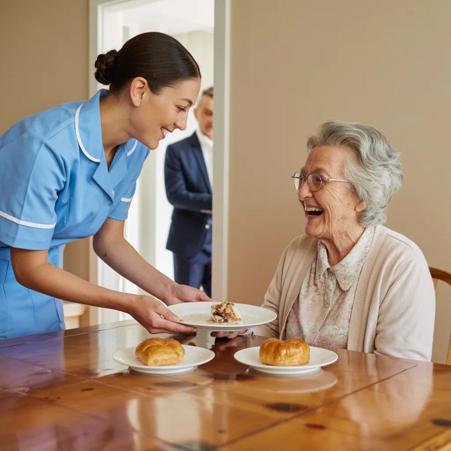 No había médicos, ni purés verdes, ni pastillas azules listas sobre una bandeja. En la mesa grande del comedor, doña Elena llevaba su blusa favorita y sonreía mientras Valeria le servía una rebanada enorme de peperoni.