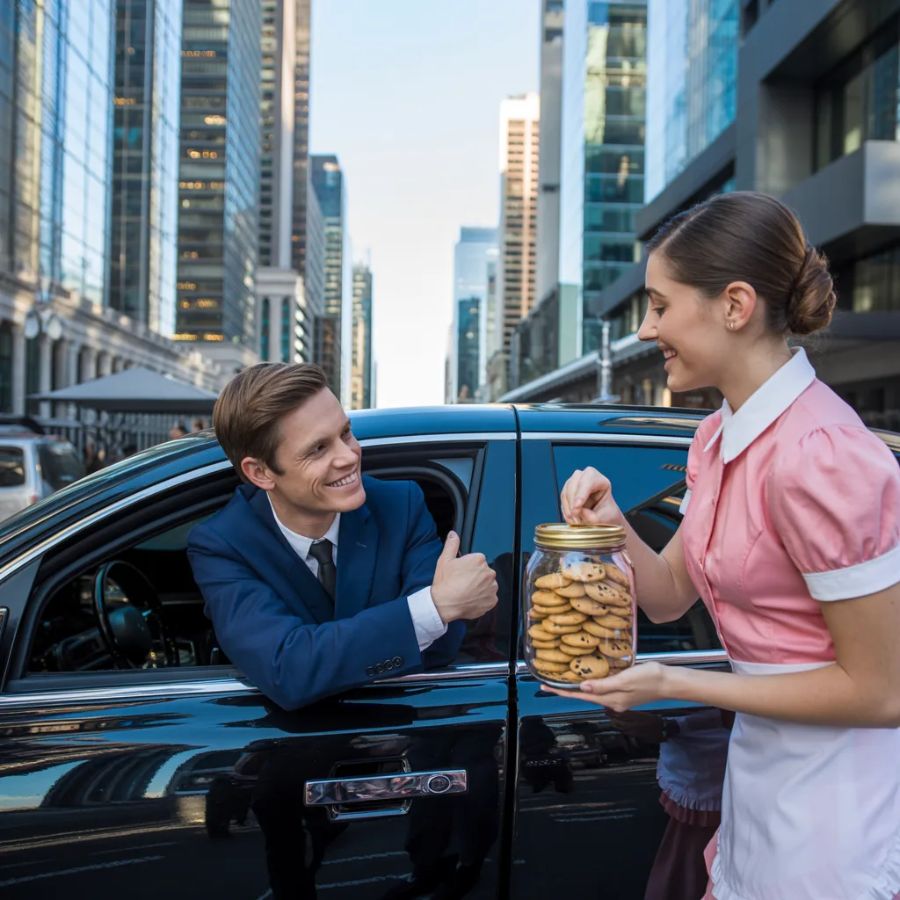 Pero esa tarde, su atención no fue capturada por un rival financiero, sino por una figura encorvada en la esquina de la acera, rodeada de frascos de cristal.