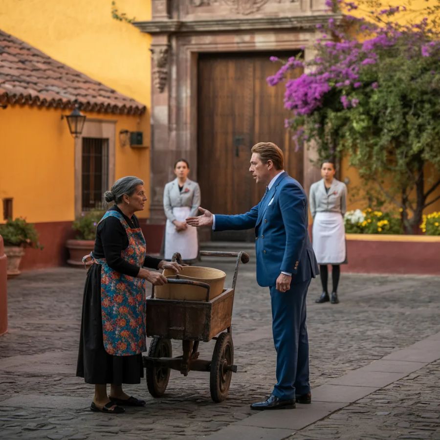 Adentro preparaban una cena importante. Había mantel largo, copas de cristal, arreglos de flores y dos cocineras corriendo de un lado a otro porque esa noche el señor de la casa recibiría a unos inversionistas. Todo brillaba. Todo olía a dinero. Todo estaba puesto para que quien cruzara esa puerta sintiera que ahí vivía gente acostumbrada a mandar.