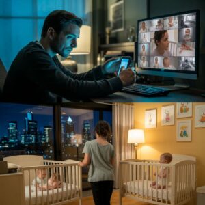 La cámara de vigilancia de la habitación infantil estaba en modo de visión nocturna; la habitación era completamente plateada y negra. Lina no estaba dormida. Estaba sentada en el suelo entre las dos cunas, totalmente erguida, con una mano apoyada suavemente en el colchón de Mateo y la otra sosteniendo un cronómetro. No era un teléfono. Era un cronómetro médico sujeto a un cordón alrededor de su cuello. Las luces de la habitación estaban apagadas, salvo por el tenue resplandor azul de la máquina de sonido, y ella observaba a Mateo con la concentración serena de una enfermera de urgencias esperando a que termine una convulsión.