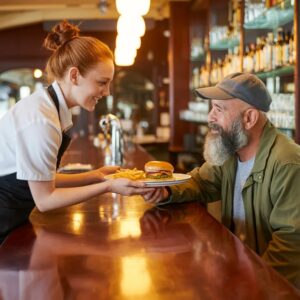 Elena, a pesar de su propia miseria, sintió una punzada de profunda empatía. Se acercó al hombre y, sacando el único billete de veinte dólares que le quedaba en el bolsillo—su dinero para el autobús de toda la semana—le pagó una cena caliente. “Todos merecen un trato digno en esta barra, señor”, le susurró con una sonrisa triste. El hombre la miró fijamente, con unos ojos increíblemente agudos bajo la suciedad.