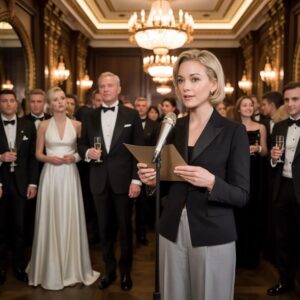En ese instante, el aire cambió. La humillación se volvió tangible, espesa. Sentí que todas las conversaciones alrededor se apagaban un segundo, como si la sala esperara mi reacción. Dejé la bandeja con calma sobre una mesa, me quité la tarjeta del cuello y caminé hacia el escenario donde estaba el micrófono de los discursos. El maestro de ceremonias apenas tuvo tiempo de decir “señora…” antes de que yo tomara el control.