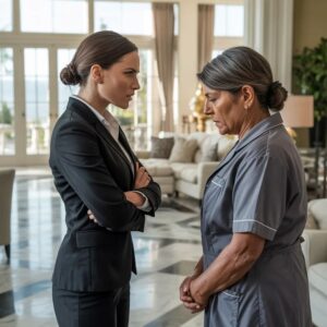 “No, primero vas a limpiar esto.” Su voz bajó, más fría, más cruel. “Y si Ethan se entera de algo de esto, diré que tú me atacaste. ¿A quién crees que va a creer? ¿A su prometida o a una empleada cualquiera que apenas conoce?”