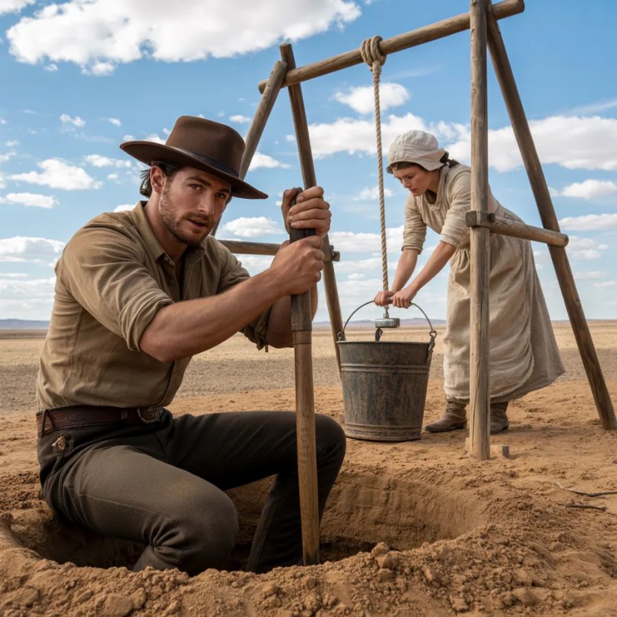 Los primeros días fueron brutales. Bajo el sol despiadado, Mateo enterraba la pala en la tierra endurecida y sacaba cubeta tras cubeta de polvo y piedras. Al principio trabajó solo. Después Josefina comenzó a ayudarle: subía la tierra, llevaba agua, vendaba las ampollas de sus manos, cocinaba algo caliente al mediodía y se sentaba al borde del hoyo para hablarle cuando el cansancio le nublaba el juicio.