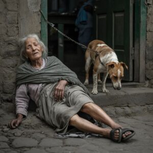 Atada a un poste oxidado con una cadena de acero gruesa estaba “Justicia”, un pastor alemán viejo y ciego que ladraba al vacío, protegiendo lo único que le quedaba. A sus pies, inconsciente sobre un colchón de cartones húmedos, yacía Margaret Hale, de 82 años. Llevaba un camisón de hospital sucio y, curiosamente, un collar de perlas auténticas que brillaba incongruentemente en la penumbra.