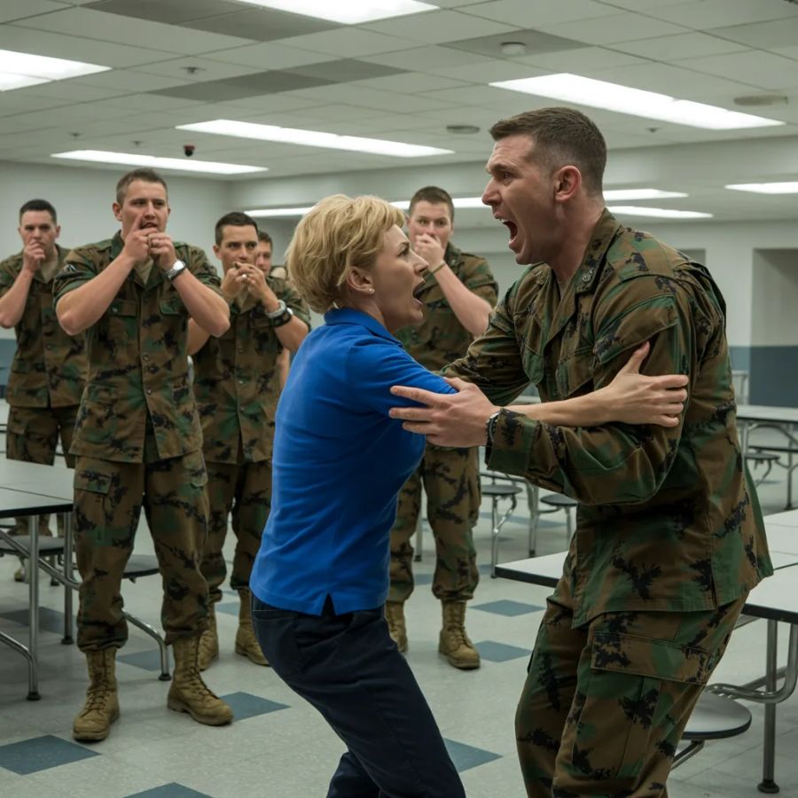 No fue una observación ni una duda. Fue una orden escupida con ese desprecio que algunos hombres se permiten cuando creen que el uniforme les da permiso de humillar. El empujón vino enseguida, seco, medido, directo al hombro, con la clara intención de sacarla de la fila del comedor de tropa y recordarle, delante de todos, cuál era “su lugar”.