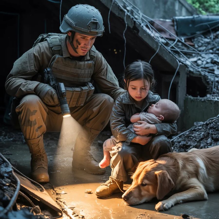 La niña no se inmutó. Levantó la vista con ojos vacíos, desprovistos de la chispa de la infancia, y abrazó con más fuerza a su hermanito. Bruno, el perro flacucho, se levantó con dificultad y se acercó a lamer la mano de Maya, colocándose suavemente entre los niños y la sombra de Dante, como si dudara de que aquel hombre de uniforme fuera realmente su salvador.