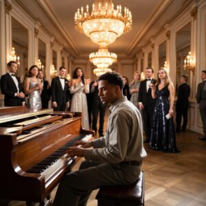 Era un Steinway, negro y pulido como un espejo. Y de repente ya no estaba en un salón de gala. Tenía otra vez doce años, sentado junto a mi madre en el sótano de una iglesia en el South Side, viendo sus manos bailar sobre teclas gastadas después de largas jornadas limpiando casas de familias que jamás recordaban su nombre.