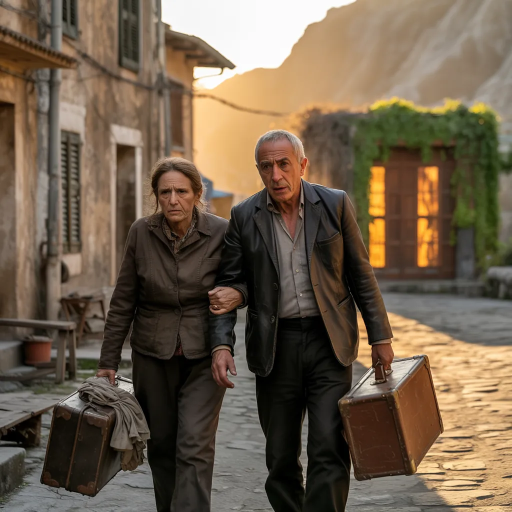 Rosa Ramírez apretaba con fuerza el asa de su vieja maleta roja, como si al soltarla también se deshiciera lo poco que le quedaba. A su lado, Armando, con la espalda encorvada por los años y el trabajo, caminaba en silencio, sosteniendo una maleta azul que parecía pesar más por lo que representaba que por lo que contenía. Detrás de ellos, la casa que habían habitado durante más de cuarenta años quedaba sellada, marcada con una palabra que dolía más que cualquier herida: embargo.