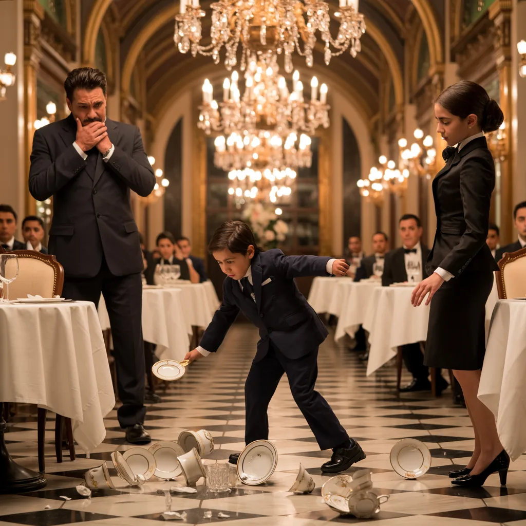 El sonido de un plato al estrellarse contra el suelo no solo interrumpió la velada, sino que rasgó la ilusión de perfección que envolvía el lugar. Las conversaciones se detuvieron, las miradas se dirigieron hacia el origen del caos, y el murmullo de la élite comenzó a crecer como una ola contenida. En medio del desastre estaba Leonard Bronski, un niño de apenas siete años, cuya pequeña figura contrastaba violentamente con la intensidad de su rabia. No era un berrinche común; había algo más profundo, más oscuro, latiendo detrás de sus ojos.