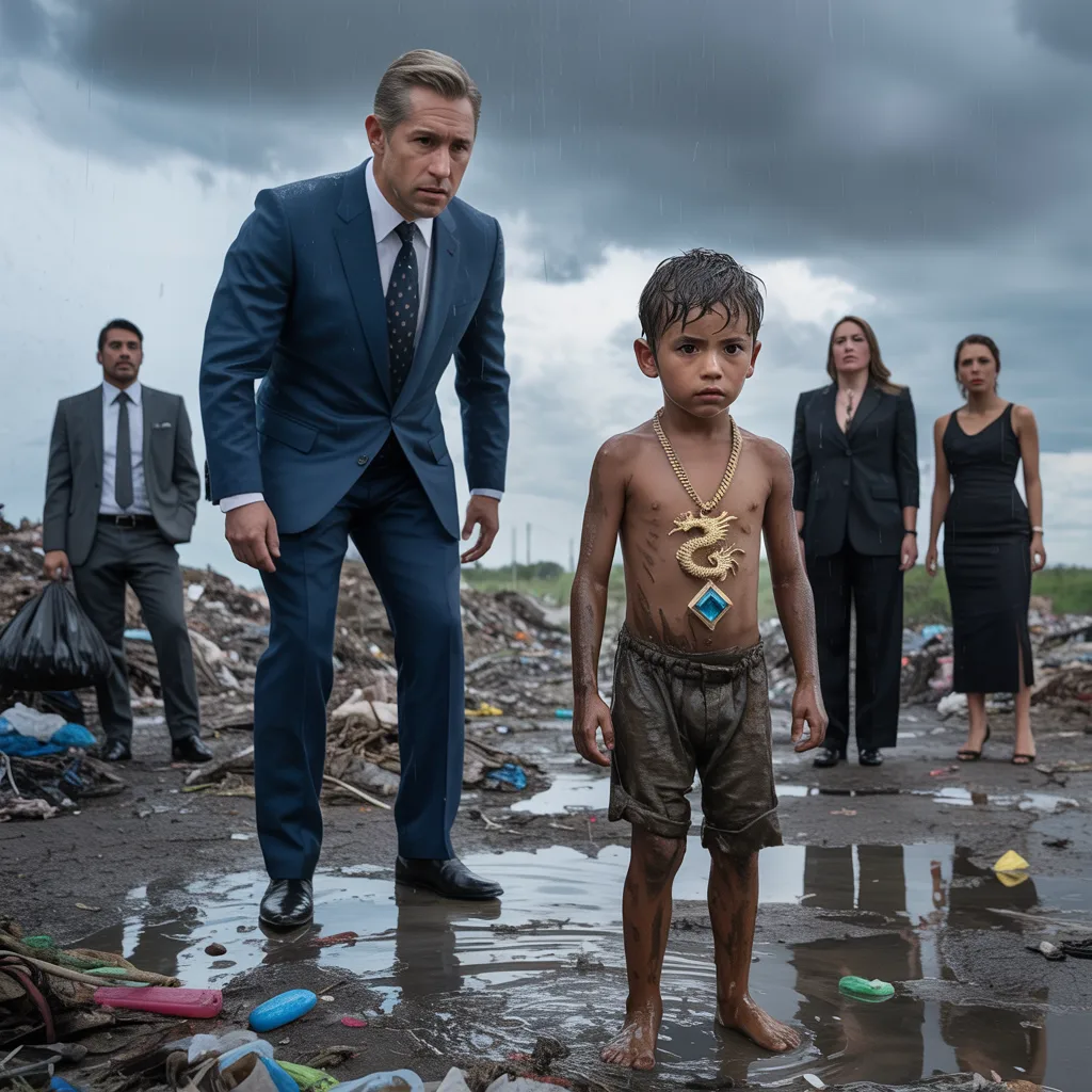 El niño apareció de repente entre el lodo y los desperdicios, agazapado y tembloroso, recogiendo botellas y cartón con manos pequeñas y manchadas de tierra. Sus pies descalzos se hundían en la mezcla de barro y agua, y Alejandro apenas tuvo tiempo de reaccionar cuando el vehículo que lo acompañaba estuvo a punto de atropellarlo. La sorpresa y el miedo se mezclaron en su pecho; algo en la fragilidad del niño despertó en él un instinto olvidado: la urgencia de proteger a alguien más allá del mundo corporativo. Beatriz reaccionó con horror fingido y repugnancia, exigiendo que lo apartaran, pero Alejandro no podía permitir que lo tocaran. Se arrodilló junto al niño y le ofreció ayuda con una suavidad que pocos conocían en él.