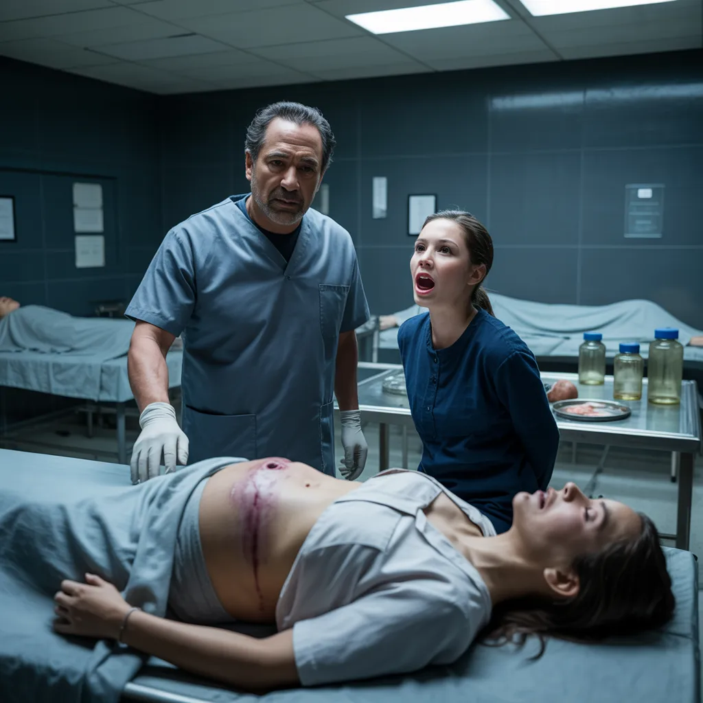Camilo se acercó con la precisión de alguien acostumbrado a la rutina, observando cada detalle de la piel, del abdomen abultado, del cabello negro esparcido sobre los hombros, mientras Ricardo no podía evitar sentir un nudo en el estómago. Fue entonces, en el silencio absoluto, cuando un sonido quebró la monotonía: un llanto débil, apagado, casi imperceptible, proveniente del abdomen de la mujer fallecida. Ricardo retrocedió, temblando, sus ojos abiertos de par en par, incapaz de creer lo que escuchaba, mientras Camilo, con un gesto de sorpresa contenida, giraba lentamente para buscar una explicación lógica. Ninguno de los dos se atrevía a respirar con normalidad; la tensión llenaba la habitación como una niebla densa que no dejaba espacio para otra emoción que no fuera el asombro y el temor. Con cada paso que se acercaba al cuerpo, Ricardo sentía que su mente oscilaba entre la incredulidad y el pánico: ¿cómo podía un bebé llorar dentro de un cuerpo que había dejado de vivir? Camilo colocó su mano con cuidado sobre el abdomen, examinando con profesionalismo, pero incluso él, acostumbrado a lo inexplicable que a veces ofrece la medicina forense, sintió un estremecimiento recorrer su columna vertebral.