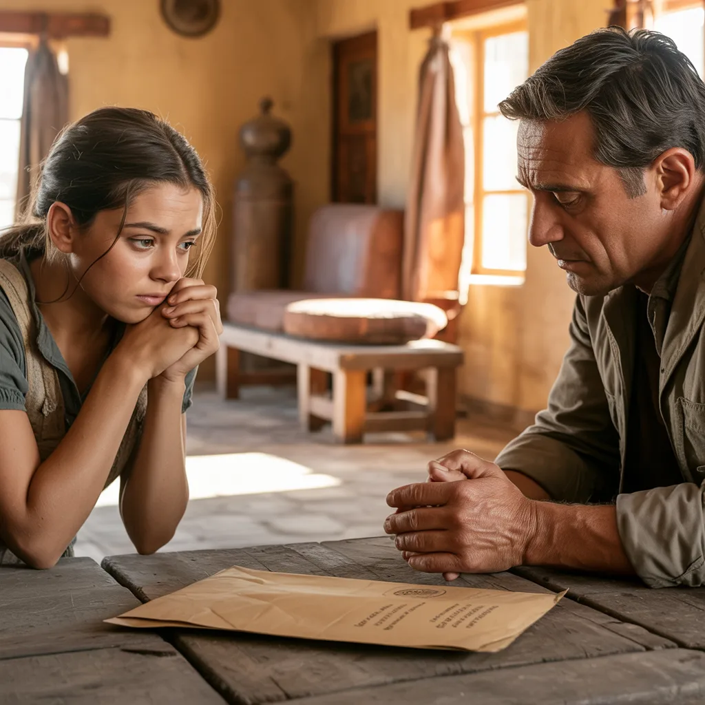 Los minutos siguientes parecieron eternos mientras ambos procesaban lo sucedido. El sobre seguía sobre la mesa, abierto, símbolo de años de secretos y promesas incumplidas, y a su alrededor, el rancho parecía respirar junto con ellos. La joven finalmente levantó la mirada y vio en los ojos del hombre un reflejo de todo lo que había sufrido, y al mismo tiempo, la determinación de que todo podría cambiar a partir de ese instante. La mezcla de dolor, rabia y alivio era tangible, como si cada partícula de aire contuviera la historia de su vida, lista para ser reconstruida.