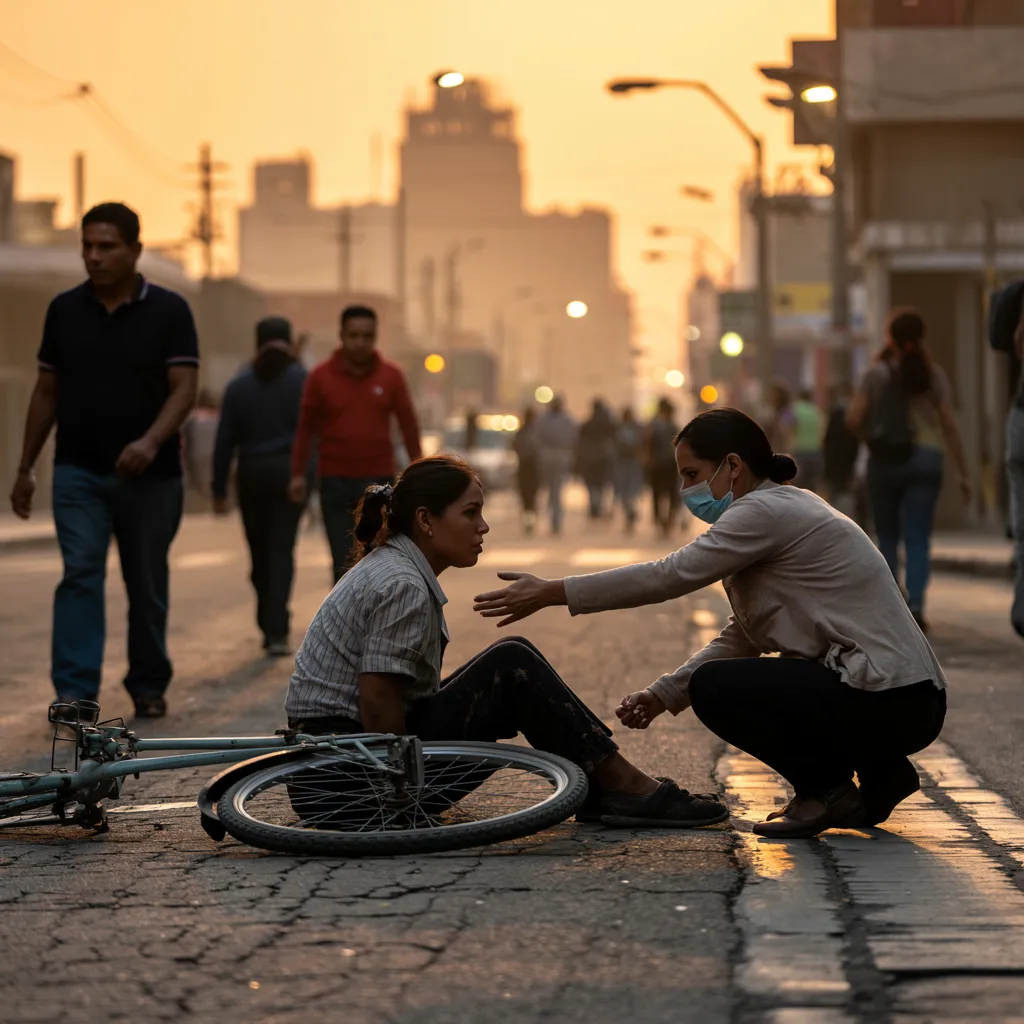 Un golpe seco rompió el ritmo de la tarde. Una motocicleta apareció de la nada, perdiendo el control y estrellándose directamente contra ella. El impacto fue brutal. Marisol salió despedida y cayó contra el pavimento con un dolor que le atravesó todo el cuerpo, dejándola sin aire, sin voz, sin reacción.