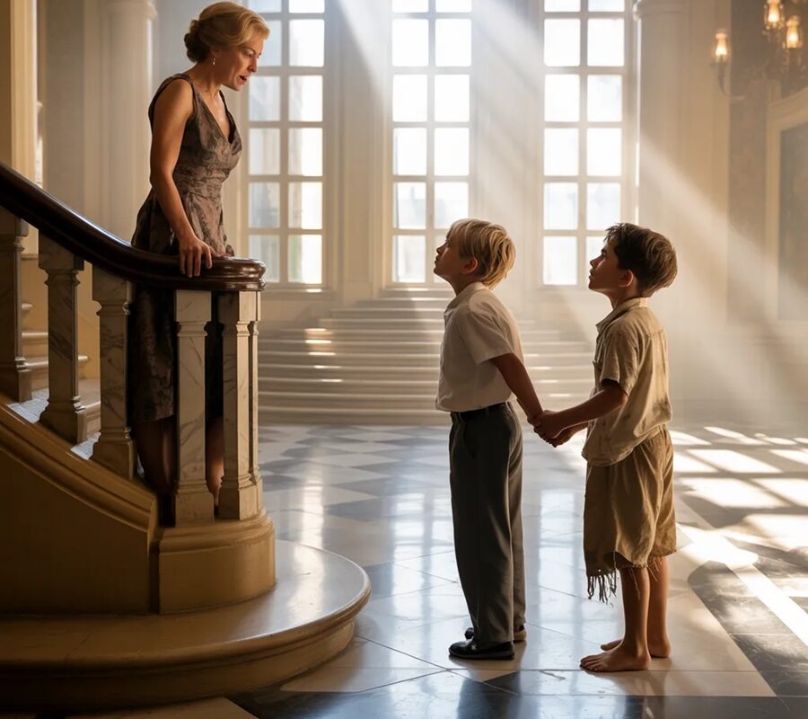 Her Son Whispered “He’s My Brother”—Then a Barefoot Boy Appeared in Her Mansion, and a Millionaire Mother Collapsed in Tears