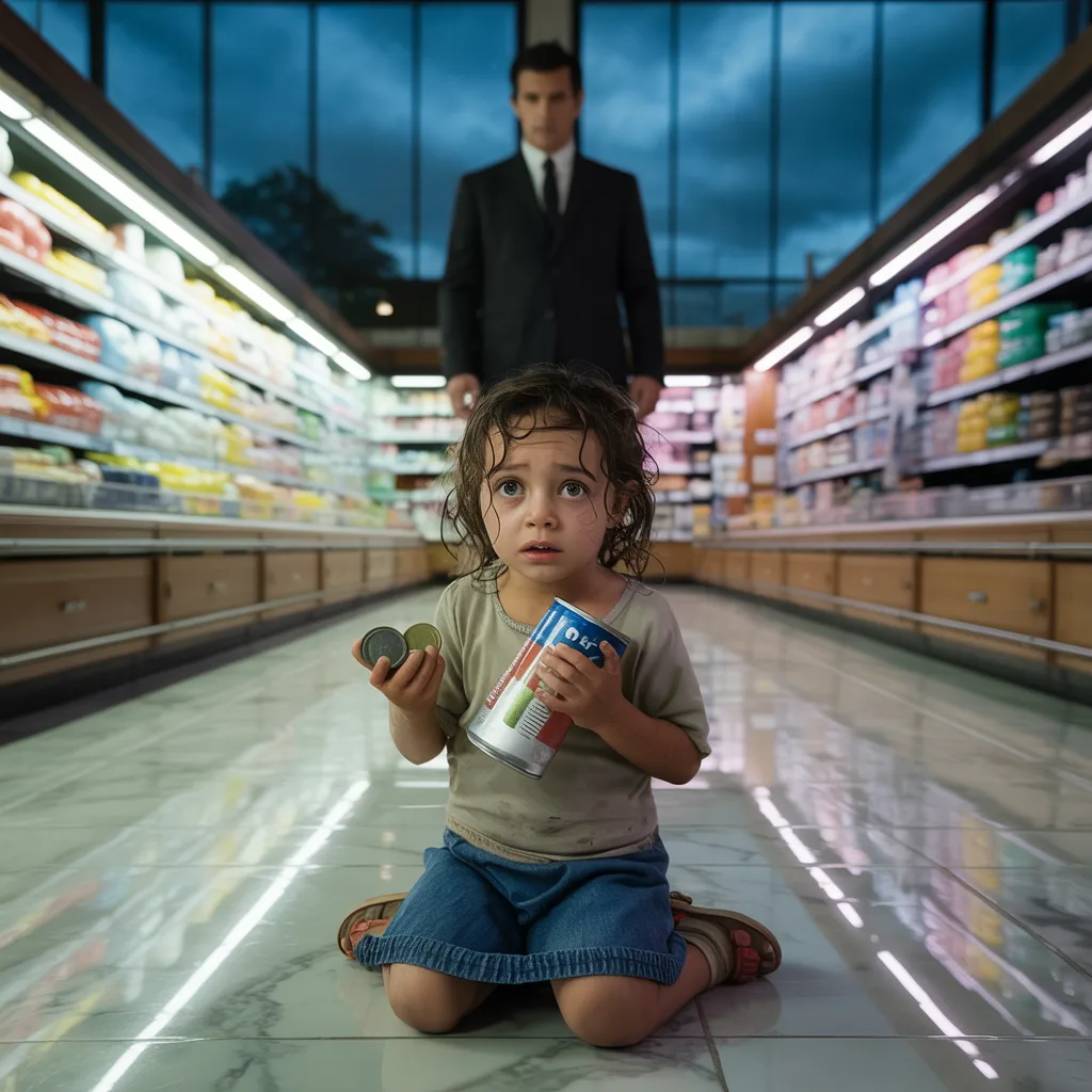 Esa noche, después de recorrer calles llenas de charcos y lodo, Lupita llegó a Selecto Market, un supermercado exclusivo que parecía brillar con una luz propia bajo la lluvia, un lugar donde cada producto estaba más allá del alcance de sus manos y de su pobreza. La puerta giratoria la recibió con un zumbido, y ella entró con pasos temblorosos, empapada y con la mirada asustada. Su vestido viejo y roto contrastaba violentamente con los pisos relucientes y los estantes impecables. Cada movimiento parecía resonar en el silencio parcial del supermercado, mientras los clientes adinerados la observaban de reojo, algunos con curiosidad, otros con indiferencia, todos ajenos a la historia que traía consigo.