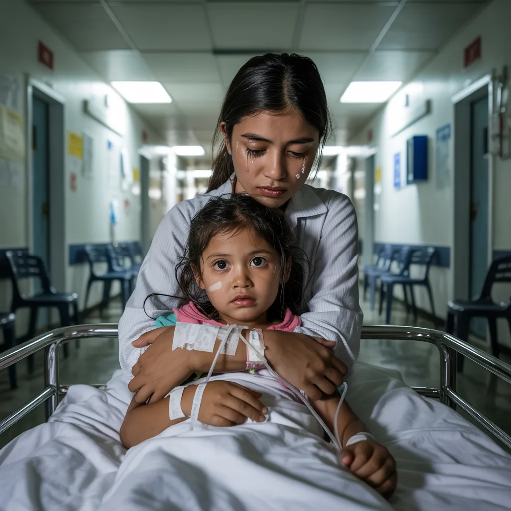 Entonces escuché aquel llanto. No era el llanto estruendoso de un niño que demanda atención; era un susurro roto, un hilo de vida casi invisible que se negaba a morir. Me detuve, conteniendo la respiración. Allí, al final del pasillo, una puerta entreabierta dejaba escapar un leve haz de luz amarillenta que iluminaba la figura frágil de una niña. Su cuerpo era delgado, sus brazos estaban conectados a tubos y sus ojos enormes me miraban con una mezcla de miedo y resignación que me atravesó el corazón.