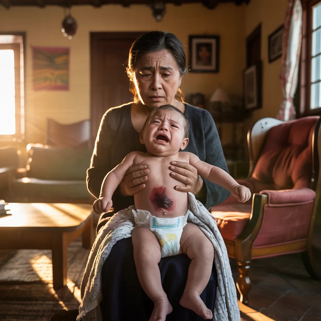 El llanto no cesaba. Fue entonces cuando noté un pequeño gesto en su abdomen, un movimiento incómodo que me hizo el corazón latir con fuerza. Lo llevé a la mesa y comencé a desabrochar su ropa. Con cuidado, despacio, pero con urgencia, levanté la tela. Ahí estaba. Justo encima del pañal. No era una irritación leve ni un sarpullido común. Era un moretón oscuro, marcado, con una forma que no dejaba lugar a dudas: dedos, como si alguien lo hubiera apretado con fuerza.