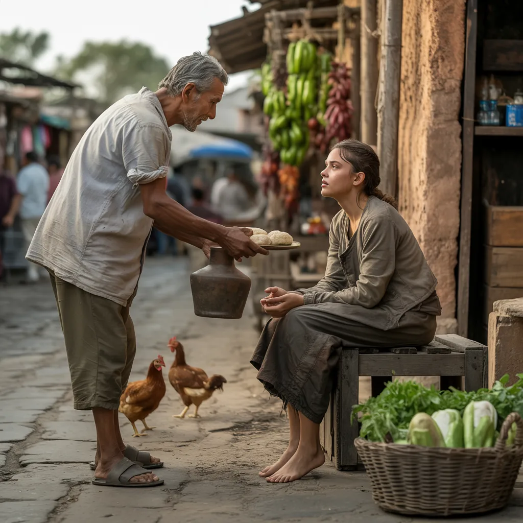 Aquella noche, mientras el viento frío soplaba entre las calles vacías, no podía dejar de pensar en ella. Había algo en su presencia que me recordaba que la vida podía ofrecer sorpresas aun cuando uno se acostumbraba a la rutina. Días después, la encontré de nuevo en otra esquina del mercado, igual de frágil, y esta vez me senté a su lado. Hablamos largo rato. Me contó su historia: sin familia, sin hogar, sobrevivida por años mendigando y aprendiendo a ignorar el frío y el desprecio de los demás.