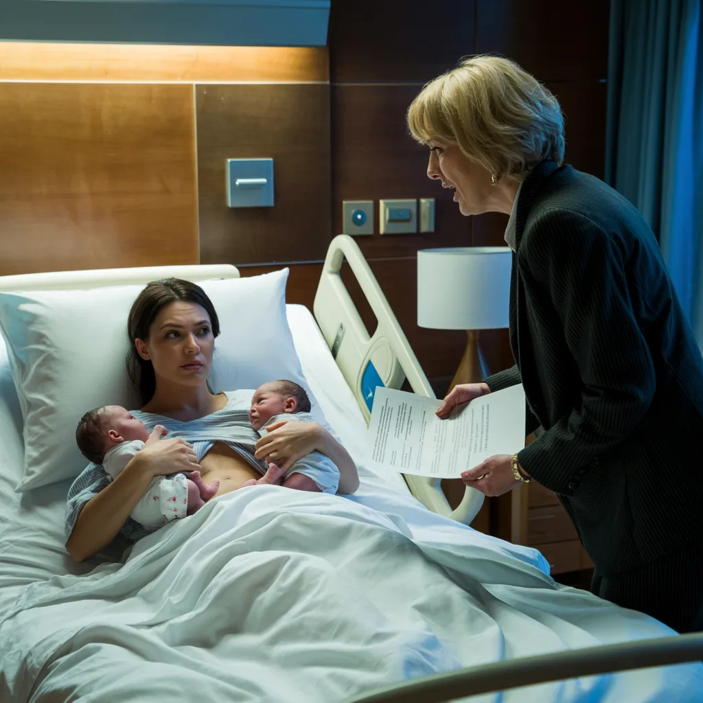 “Firma esto. Es una renuncia a los derechos parentales. Karen, tu cuñada, es estéril. Necesita un hijo varón para continuar el legado. Además, tú no puedes con dos bebés. Dale a Leo a Karen; tú quédate con la niña.”