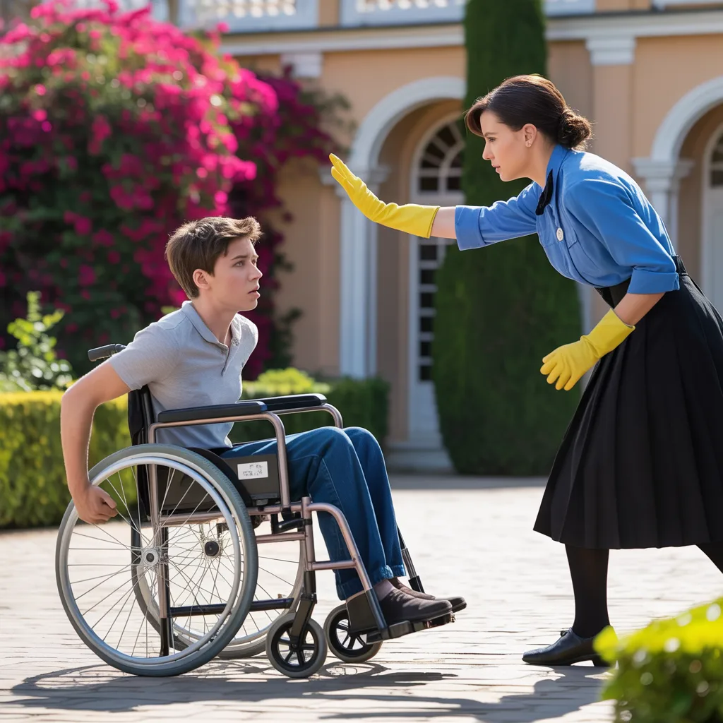 Y allí, en esa silla de ruedas, estaba Leo: el hijo del patrón, un adolescente de catorce años que parecía mucho más pequeño debido a la atrofia de sus piernas y al peso de una tristeza antigua que nadie había logrado curar. Tenía los ojos enormes y oscuros, llenos de un silencio que gritaba más fuerte que cualquier palabra, como si cada segundo vivido hubiera dejado una marca imposible de borrar. Leo no decía nada. No debía gritar, porque su voz no viajaba igual; no debía moverse, porque su cuerpo estaba marcado por limitaciones que nadie terminaba de comprender; y no debía reaccionar porque, después de todo, nadie lo había enseñado a defenderse en un mundo que lo había tratado con indiferencia.