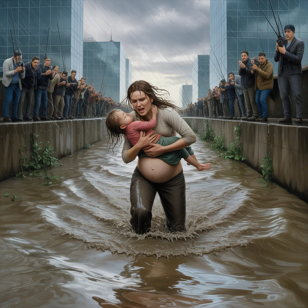 Cada brazada fue un combate contra la corriente, un diálogo silencioso con el instinto que le decía “ya no hay vuelta atrás”. Logró sujetar el saco del niño y, pese al agotamiento, la fuerza de su corazón y la urgencia de la situación la impulsaron hacia la orilla. La multitud gritaba instrucciones que no podían seguir, pero de algún modo las escuchaba, adaptándose a cada nuevo obstáculo. Sus pies golpearon piedras y metal, su piel se raspó con el concreto resbaladizo, y aun así continuó. Cuando finalmente lograron sacarla junto al niño, Marina estaba cubierta de lodo, agua y sangre en la palma de la mano; su cuerpo temblaba, la respiración entrecortada y el corazón desbocado. El niño tosía, un sonido que atravesó a la multitud y provocó lágrimas de alivio y suspiros que parecían suspender el tiempo. Por un momento, Marina pudo creer que todo había terminado bien, que la valentía había sido suficiente para cambiar un destino que parecía sellado por la indiferencia de quienes observaban desde la seguridad de la orilla.