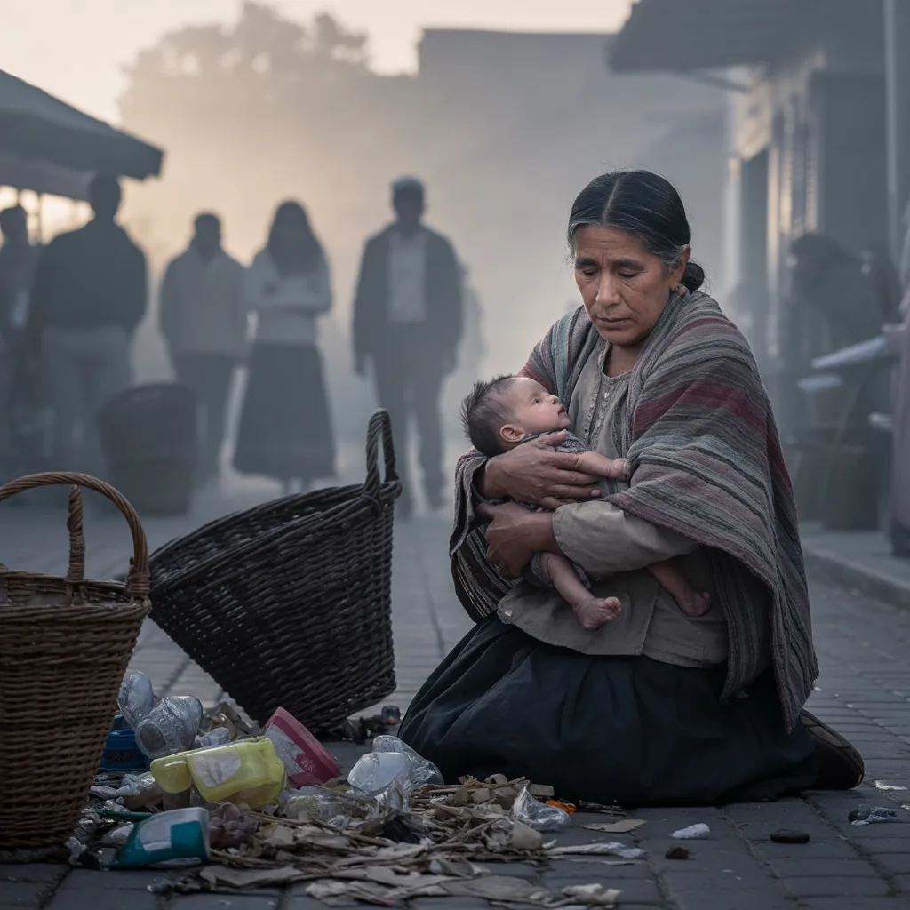 Los días siguientes fueron difíciles. El barrio entero la observaba con juicio constante. La llamaban irresponsable, insensata, incluso egoísta por cargar con una vida que no era suya. Algunos aseguraban que ese niño terminaría trayendo desgracia. Pero Elena, a pesar del hambre y el cansancio, seguía adelante. Cada mañana salía a recoger botes y cartón, y cada noche regresaba para alimentar a Diego con lo poco que podía conseguir.