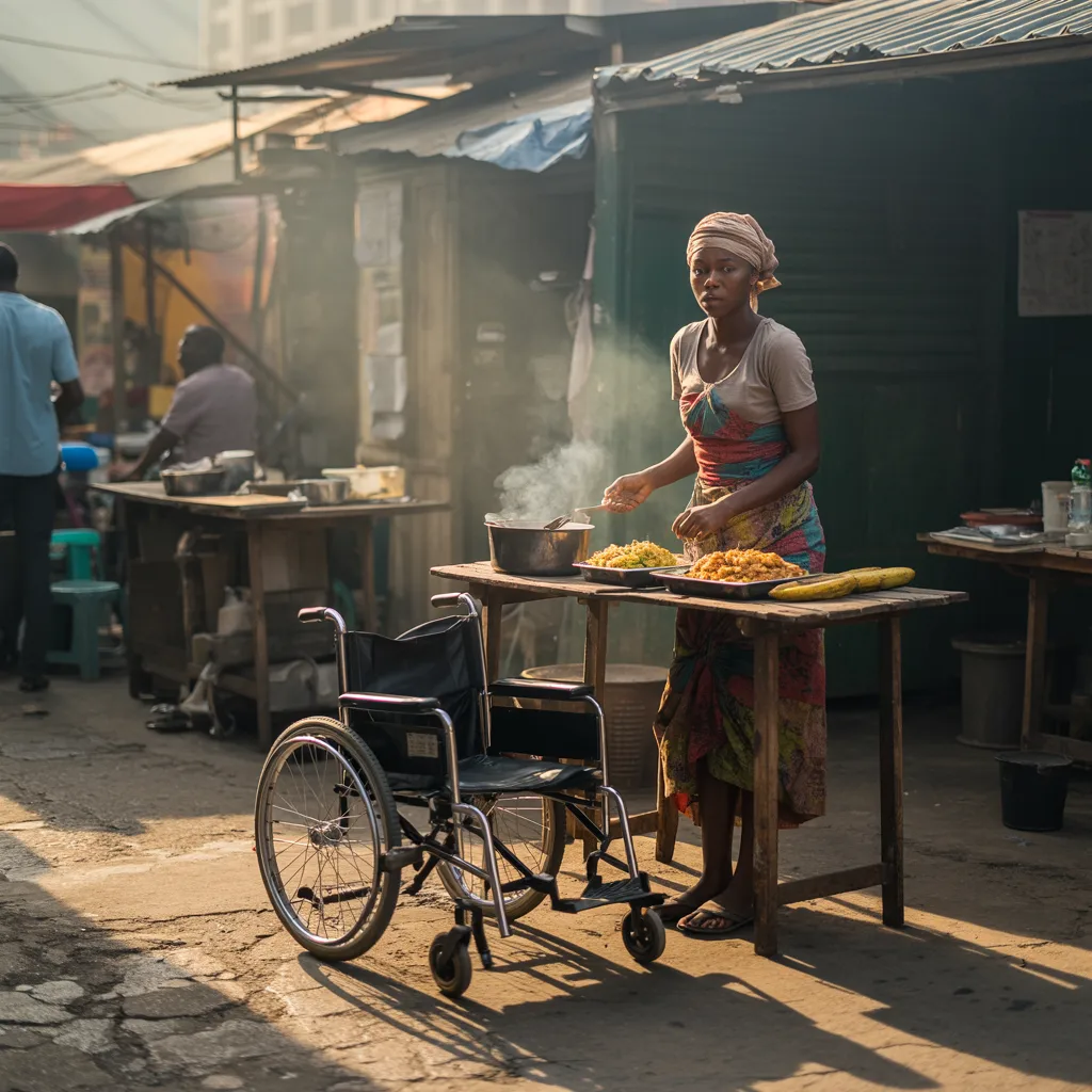 In the heart of Lagos, where mornings arrive with heat instead of silence, Esther had built her life around a small wooden food stall that leaned slightly to the left, as if it had been shaped by years of wind, hunger, and survival.