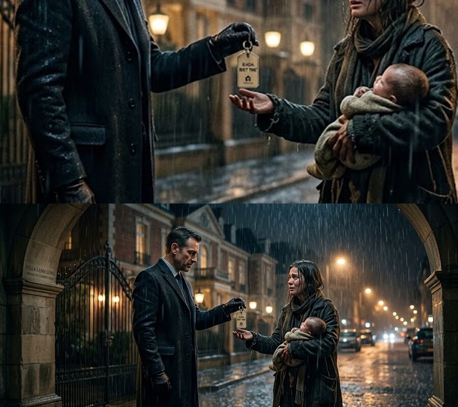 He Gave His Mansion to a Homeless Woman in the Rain… But When He Returned and Opened the Door, He Froze at What He Saw Inside…