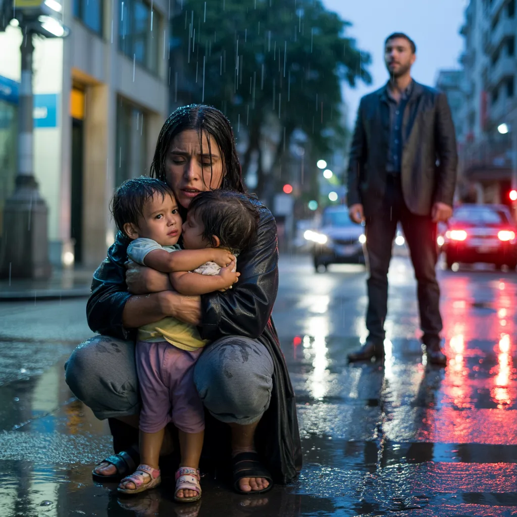 La lluvia caía sin descanso sobre la Ciudad de México, pesada y fría, golpeando las calles, los techos y los charcos acumulados en la banqueta. Rosa Martínez avanzaba con dificultad, abrazando a sus dos hijos, Lucía de siete años y Mateo de quince meses, tratando de protegerlos con su propio cuerpo mojado y tembloroso. Durante tres días, habían sobrevivido solo con pan duro y agua. No había más comida, no había más esperanza. Cada paso le dolía en los pies, empapados y fríos, y en su corazón, donde la desesperación crecía con cada segundo que pasaba.
